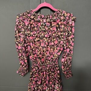 Misa Los Angeles Pink and Brown Floral Long Sleeve Dress