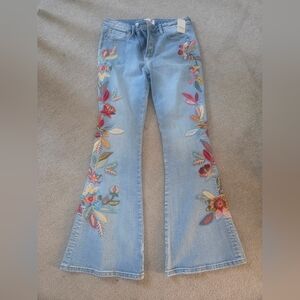 NWT Free People Driftwood Farrah Flare Leg Embroidered Jeans