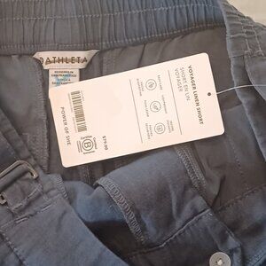 NWT Athleta Granite Blue Linen Voyager Shorts Lightweight