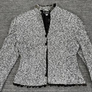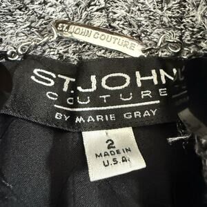St. John Jacket Women 2 Gray Feathers Bazer Beaded Preppy Business Elegant USA