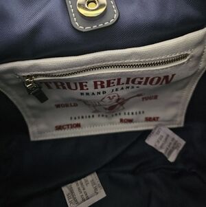 True Religion Frayed Dark Blue Denim Hobo Shoulder Bag ~Logo