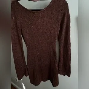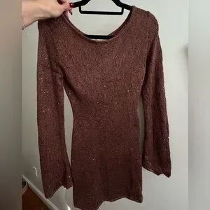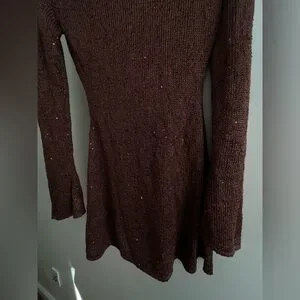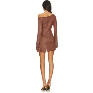 Asta resort Maya Sleeve Mini Dress - Chocolate Sequin Brown One-Shoulder Dress