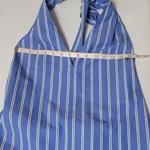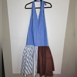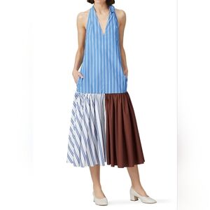 Tibi Blue Stripe Halter Midi Dress Colorblock Skirt | Size 8