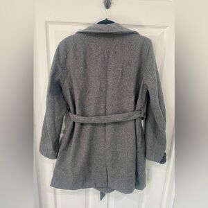Chic charcoal trench coat by GAP. Features a classic belt and tailored fit. Ideal for versatile styling.