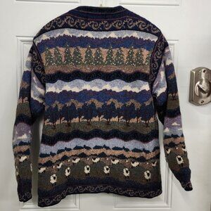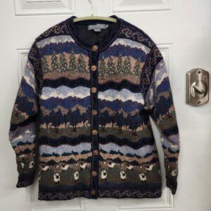 Icelandic Design Cardigan Sweater - Field with Trees & Sheep / Lambs - Small