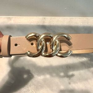 NWOT Faux Leather Gold-tone Buckle Cinch Waist Adjustable Belt Beige 39"