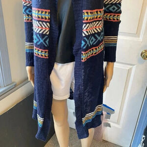Eyeshadow Hoodie Cardigan Sweater OpenFront Womens S Navy Aztec Long Grunge Knit