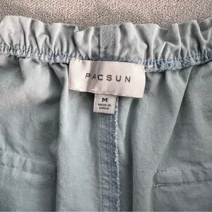 PacSun Parachute Cargo Pants. Light Blue. Medium. Drawcord waist and ankles. Lightweight. Baggy. Pre owned. No holes or stains. See photos for approximate measurements.