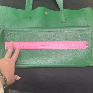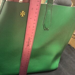Chic Tory Burch tote in vibrant green. Features sleek design and durable leather. Perfect for everyday use.