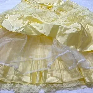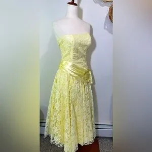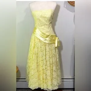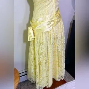 80’s ZUM ZUM Vtg Yellow Lace Frilly Satin Sequins Sash Prom Gown Wedding Dress