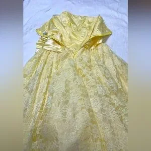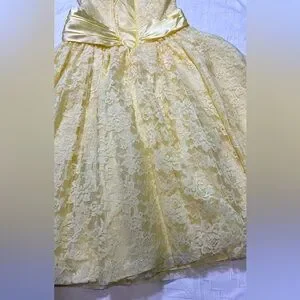 ZUM ZUM Vintage Yellow Lace Frilly Satin Sequins Sash Prom Gown Wedding Dress