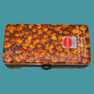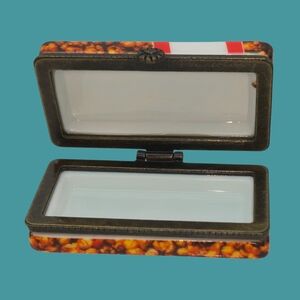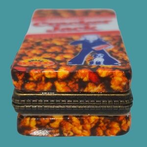 Highly collectible Cracker Jack porcelain hinged box produced by Midwest of Cannon Falls for Borden, known for their finely crafted licensed collectibles. This piece features the iconic Cracker Jack branding and includes the original whistle, a key detail that significantly enhances collector value.