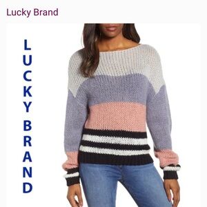 Stay cozy and stylish with the Lucky Brand colorblock sweater. Featuring a blend of pink, blue, and white, this sweater is perfect for any casual outing. EXCELLENT CONDITION!