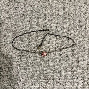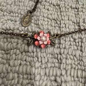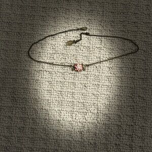 This charming necklace features a delicate pink flower design, perfect for adding a touch of elegance to any outfit. The vintage style and intricate details make it a standout piece in any jewelry collection.