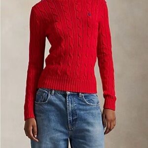 Cable-Knit Cotton Crewneck Sweater Polo Ralph Lauren Red medium