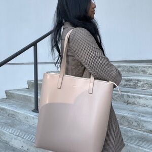 This elegant light beige zipper tote bag is perfect for any occasion but specifically for work! Its sleek design and neutral color make it a versatile addition to your wardrobe.
