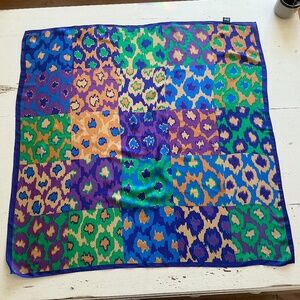 Vintage Honey brand colorful 100% Silk Art Deco scarf 31” x 31”