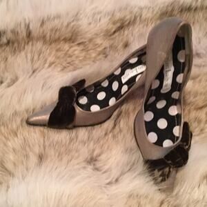 Christian Lacroix vintage Golden brown high heels w/velvet bow 8.5 worn once