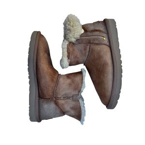 UGG Bailey Mini Zip Chestnut Suede Shearling Women’s Size 6