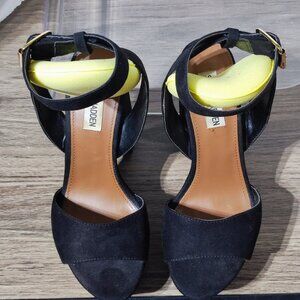 Steve Madden Kali Chunky Heels women's size 8.5 black flocked fabric