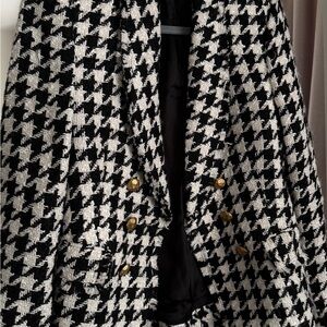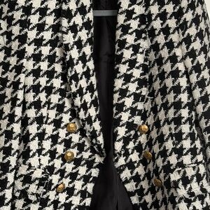 Zara Black and White Houndstooth Blazer with Gold Buttons