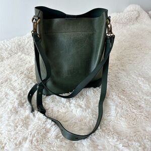 Green Madewell bucket bag with two different sized straps. With pocket inside. Genuine leather