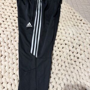 Suiting up for your sport doesn't have to mean sacrificing comfort. Stay cosy and ready for activity in these adidas pants. Bend and stretch naturally in a distraction-free fit as you warm up on the track or pitch. Move seamlessly from game time to recovery time feeling fresh, dry and confident, thanks to moisture-absorbing AEROREADY.