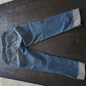 Stylish cropped jeans in a classic blue. Designed with minor distressing. 8.5" rise, 25" inseam.