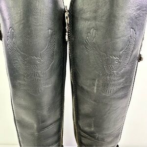 These Vintage Y2K Harley-Davidson Ranger H-3015 Black Leather Biker Boots in size 6 are a stylish and edgy addition to any wardrobe. With a round toe shape, zip closure, and low block heel, they are perfect for casual occasions in the winter season. The black leather upper material and rubber outsole provide durability and comfort, while the knee-high shaft and buckle accents add a touch of biker-chic flair. Whether you're hitting the road on a motorcycle or just want to make a statement, these boots are sure to turn heads.