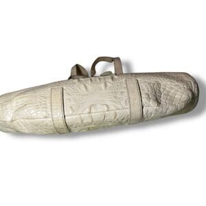 Vintage Brahmin Croc-Embossed Leather Barrel Shoulder Bag – Ivory / Cream