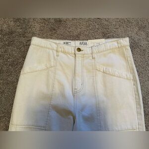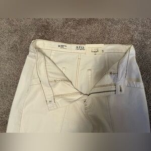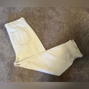 Popular high-rise barrel jeans in a natural cream/off-white color in a Women’s Size 14. Sophisticated comfortable fit with classic five-pocket design with zip and button closure. Perfect for any occasion. A great basic staple needed for all closets. Brand new with Tags.