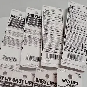 Vibrant collection of Maybelline Baby Lips lip balms. Includes shades in blue, white, orange, pink, and purple. Perfect for soft, hydrated lips.