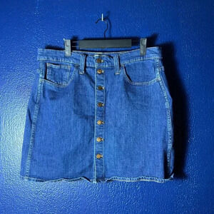 Madewell Womens Annetta Wash Button Front Stretch Denim Straight Mini Skirt 32
