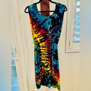 Stand out in this vibrant tie-dye midi dress. Perfect for any occasion, this dress features a stunning blend of colors that will make you the center of attention. It is absolutely adorable never been worn. Unfortunately it was two small for me. Could be mistaken for brand new.!