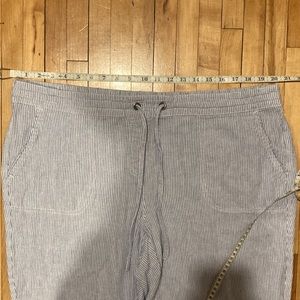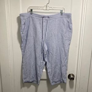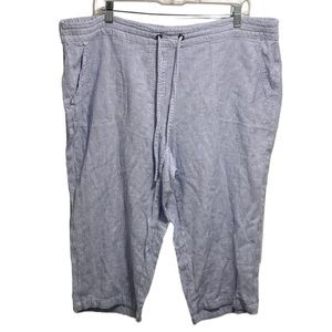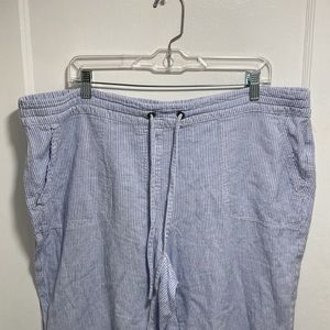 Per Se Blue and White Stripe Cropped Linen Blend Pants