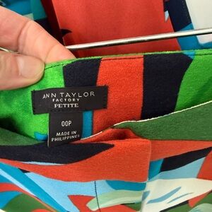 Vibrant Sleeveless top and pants set with a tropical print. Features bold red, green, and blue colors. Great summer outfit!
