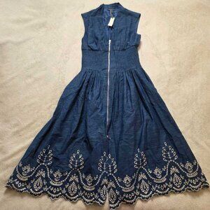 New M By Anthropologie The Tommie denim eyelet trim dress