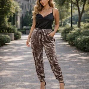 NWOT Mocha Crushed Velvet Velour Very Soft Relaxed Fit Joggers Pants