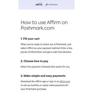 Download the Affirm app or sign in at affirm.com to set up AutoPay or easily make payments for your Poshmark purchase.