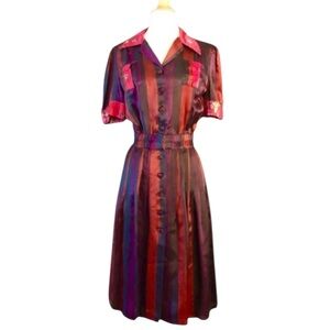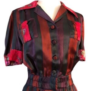 Vintage Y2K Jean Paul Gaultier Italy Striped Button Down Dress, Jewel Tones, S