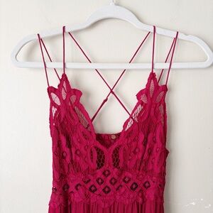 FP One | Adella Crochet Lace Maxi Dress Ruffles Strappy Boho Romantic Red Small