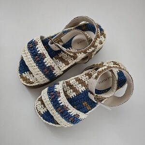 NIB Free People Boho Roma Raffia Sandals Platform Blue Cream Size 6