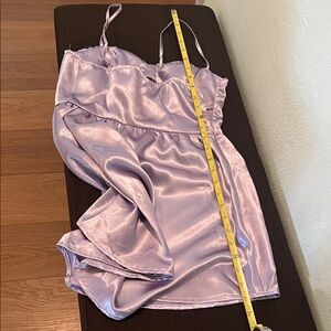 Experience luxurious comfort with this elegant purple satin nightgown. Perfect for a restful night's sleep or lounging in style.