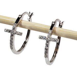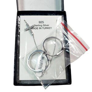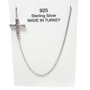 Side Cross sterling silver earrings with simulated diamonds and matching cross necklace. Marked 925. Like new with packaging. Never worn.