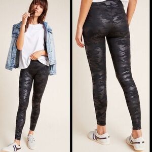 SPANX faux leather camo leggings in matte black camo Medium