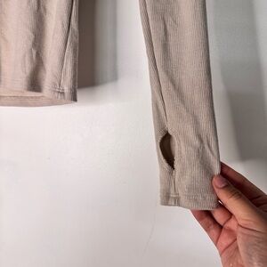 Joah Brown Stitch Mock Neck Long Sleeve Thumb Hole Ribbed Top