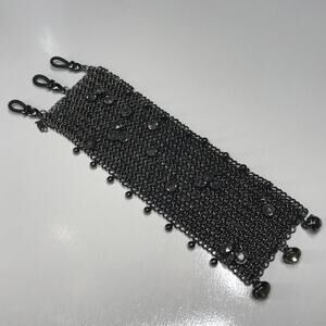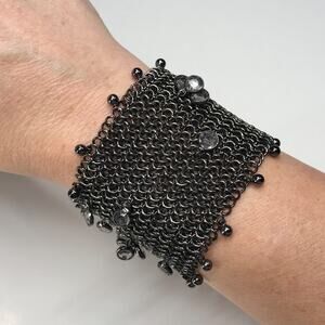 ABS by Allen Schwartz Chainmail Mesh Woven Chain Wide Bracelet Bezel Set Rhinestones
