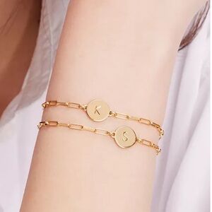 Chic gold colored chain bracelet from Kate Spade. Features a delicate chain and a circular charm with the initial ‘C’ on the front (the backside is blank). NTW and comes with a jewelry pouch. Please note: the last photo is a stock photo used as an example only. The only bracelet available is with the letter ‘C.’