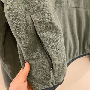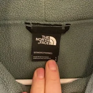 Soft teal fleece jacket by The North Face. Features a cozy design with a high collar. Big front pocket that can be zipped closed.