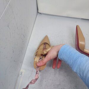 Please note scratches on bottom as shown. Please note extremely faint mark on back of heel as shown